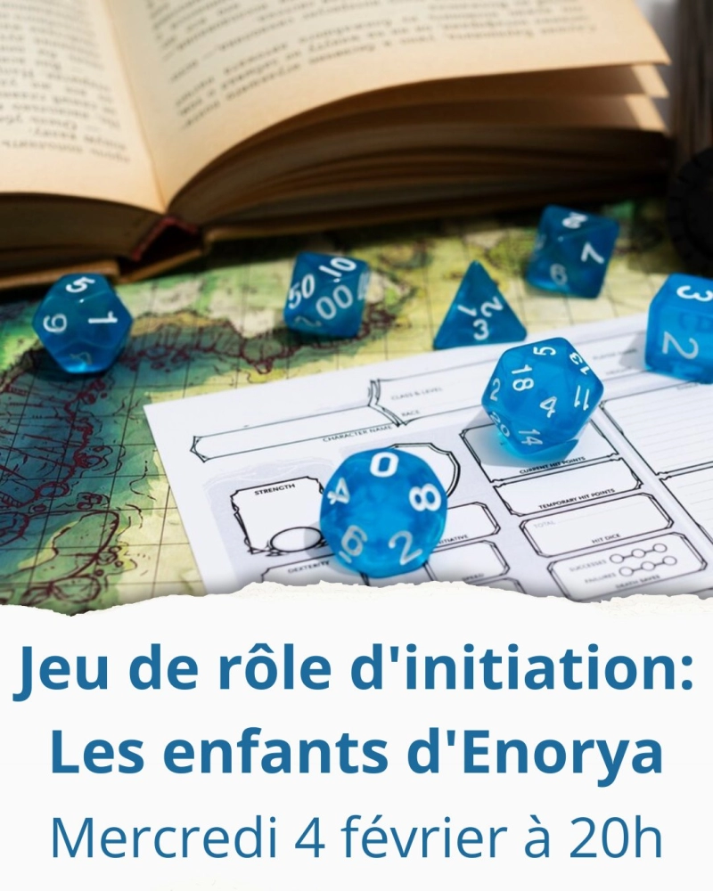 Mercredi 4 février à 20h, venez découvrir le jeu de rôle d’initiation Les enfants d’Enorya e...